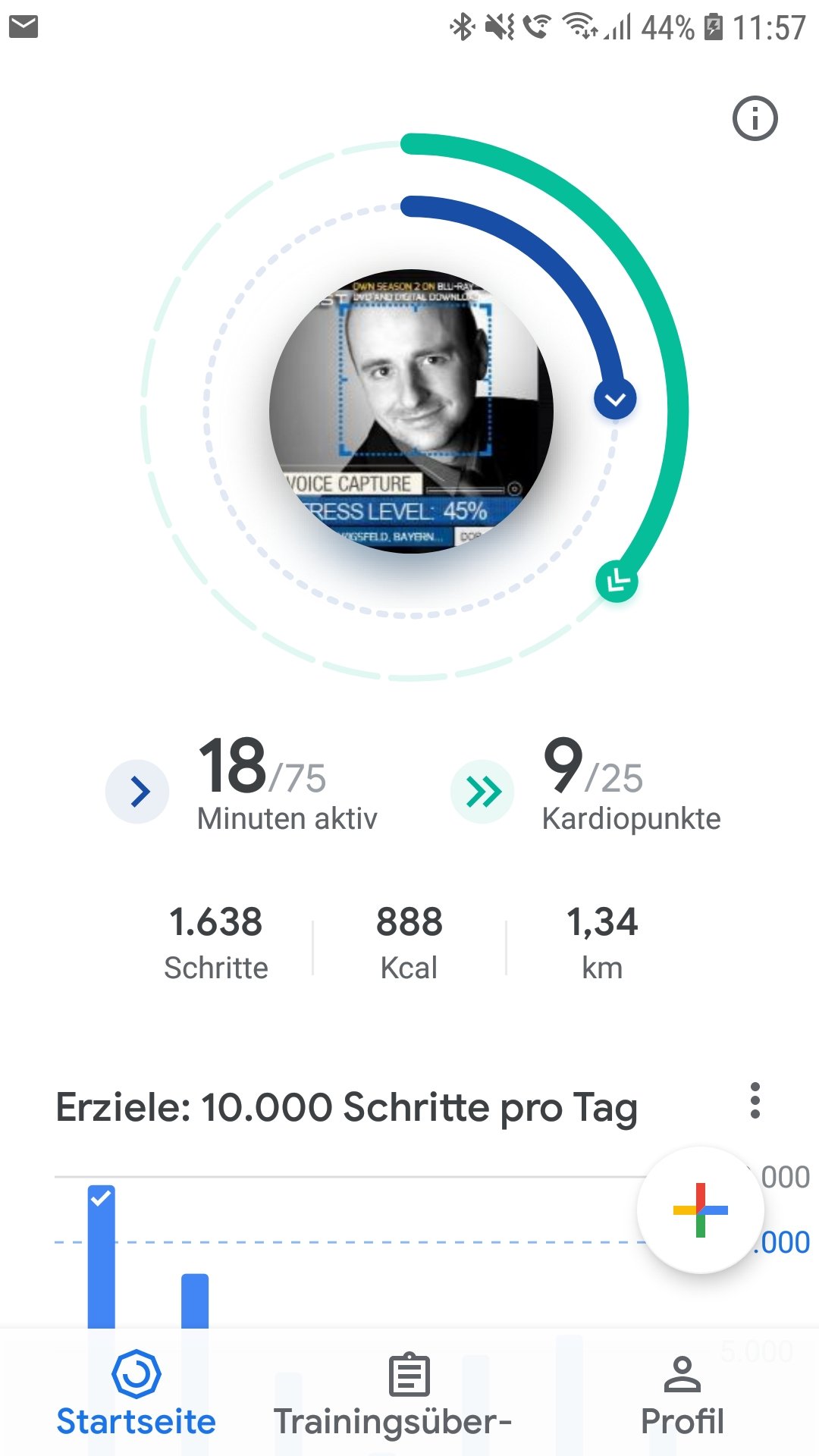 Hier mal ein aktuelles Bild der kostenlosen Google-Fit-App. Kann man mit jedem Android-Smartphone nutzen.
